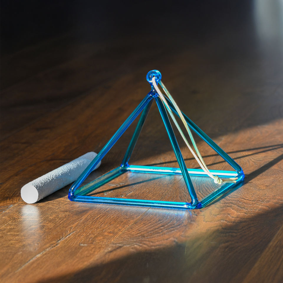 Pyramide chantante en quartz bleu triangulaire personnalisée par l'usine Jinfang avec maillet et sac de transport pour la guérison par le bain sonore et la méditation