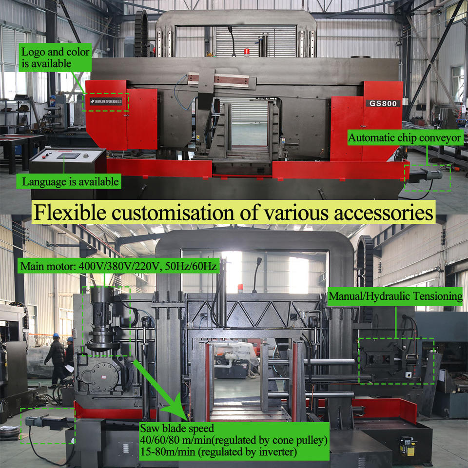 Vitesse de la lame de scie (m/min):40/60/80 m/min (régulé par poulie conique)
