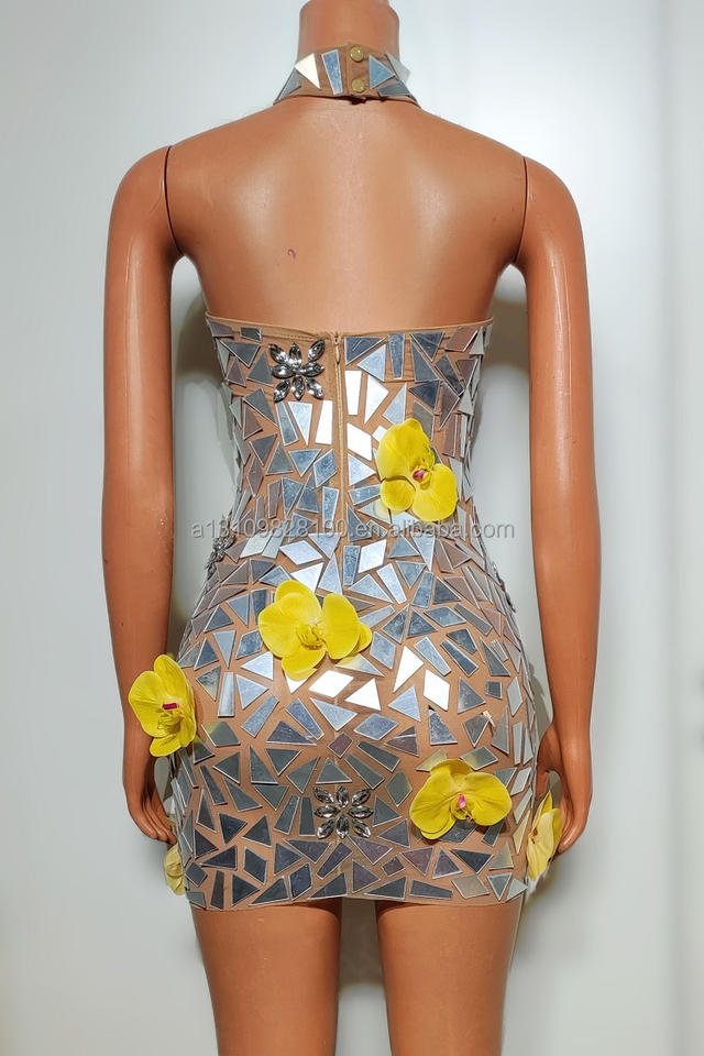 Jing Shui Lentille Laser Fleur Cou Serré Suspendu Dos Ouvert Robe Courte Jazz Fête D'anniversaire Discothèque Bar Performance Vêtements