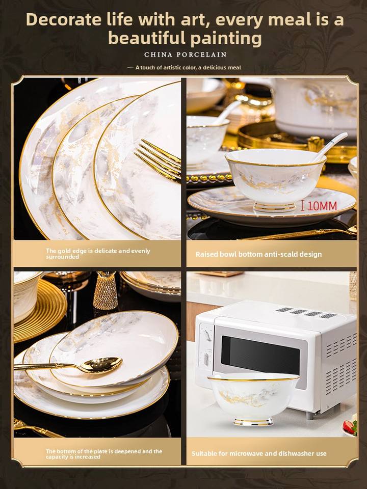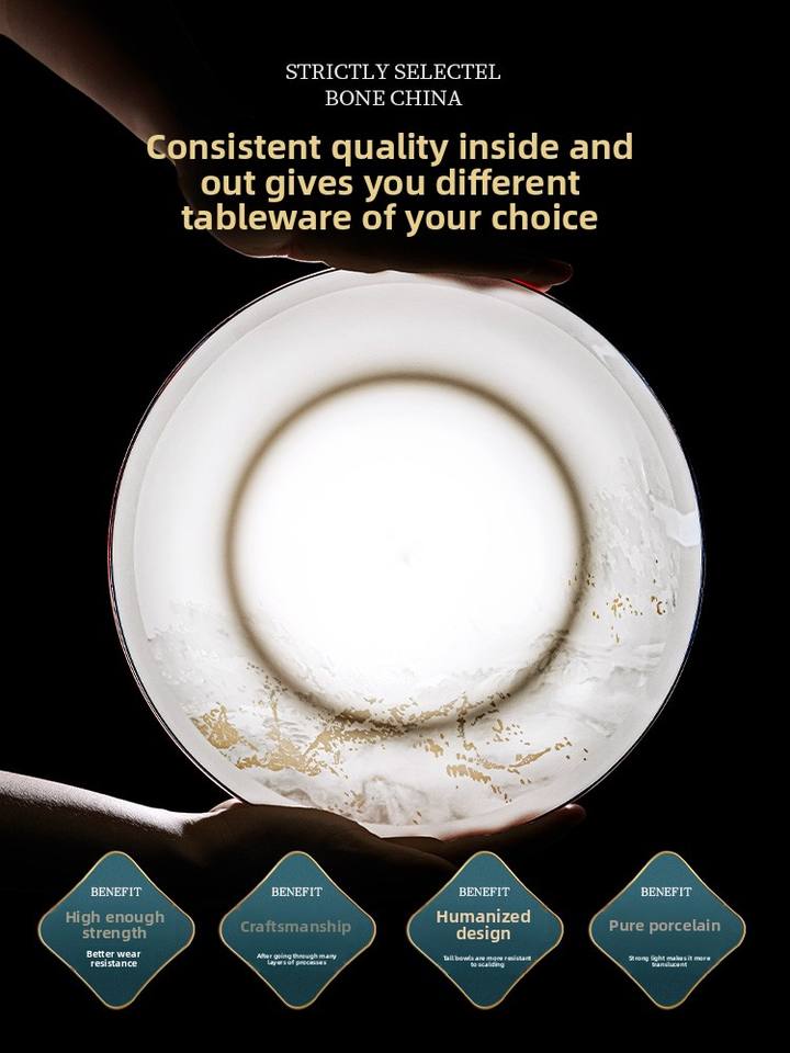 Service de bols et d'assiettes de style chinois moderne de Jingdezhen, vaisselle en céramique de haute qualité, porcelaine osseuse, grand éclat, couleur de glaçure champêtre