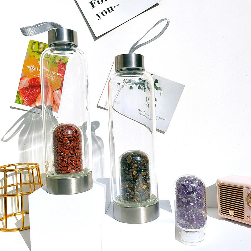Jingfa Logo personnalisé bouteille d'eau en acier inoxydable avec couvercle bouteille d'eau en cristal élixir de guérison énergie infusé de cristal