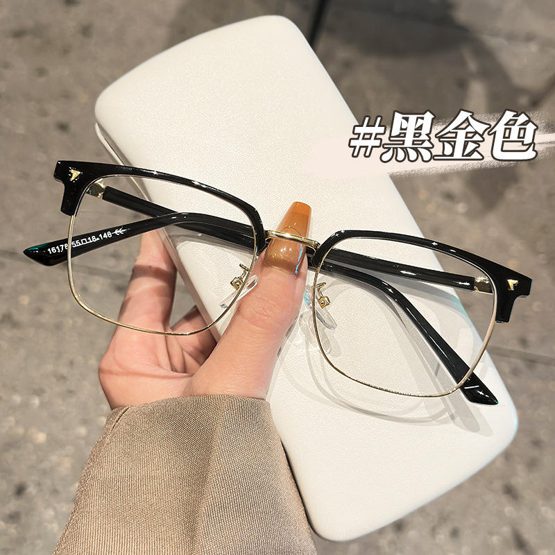 Monture de lunettes Jingyi demi-cerclée noire mate, rectangulaire, pour hommes, protection anti-UV et anti-lumière bleue 16178