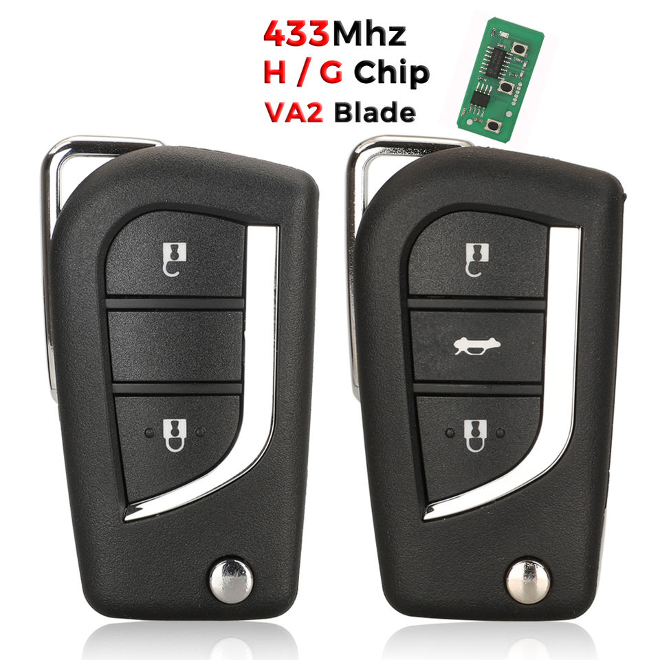 Clé télécommande pliable Jingyuqin à 2-3 boutons pour Toyota Corolla, AYGO, Verso, Avensis, Citroën C1 (modèle 108) avec puce H/G 433 MHz