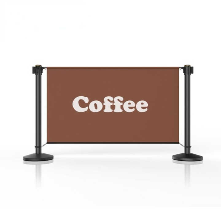 Système de file d'attente Jinke Company, séparateurs de file d'attente, poteaux de séparation rétractables en ceinture noire, barrières de trottoir, barrières de café, barrières de bar avec bannière