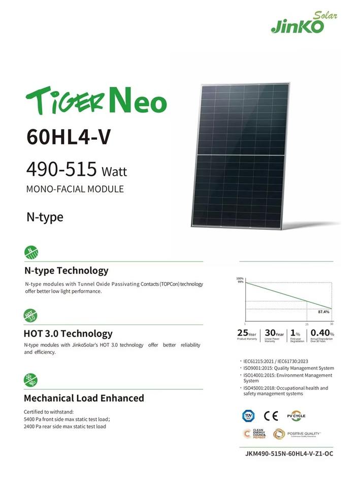 Numéro de Type:Jinko Tiger Neo 60HL4-V 490~515w