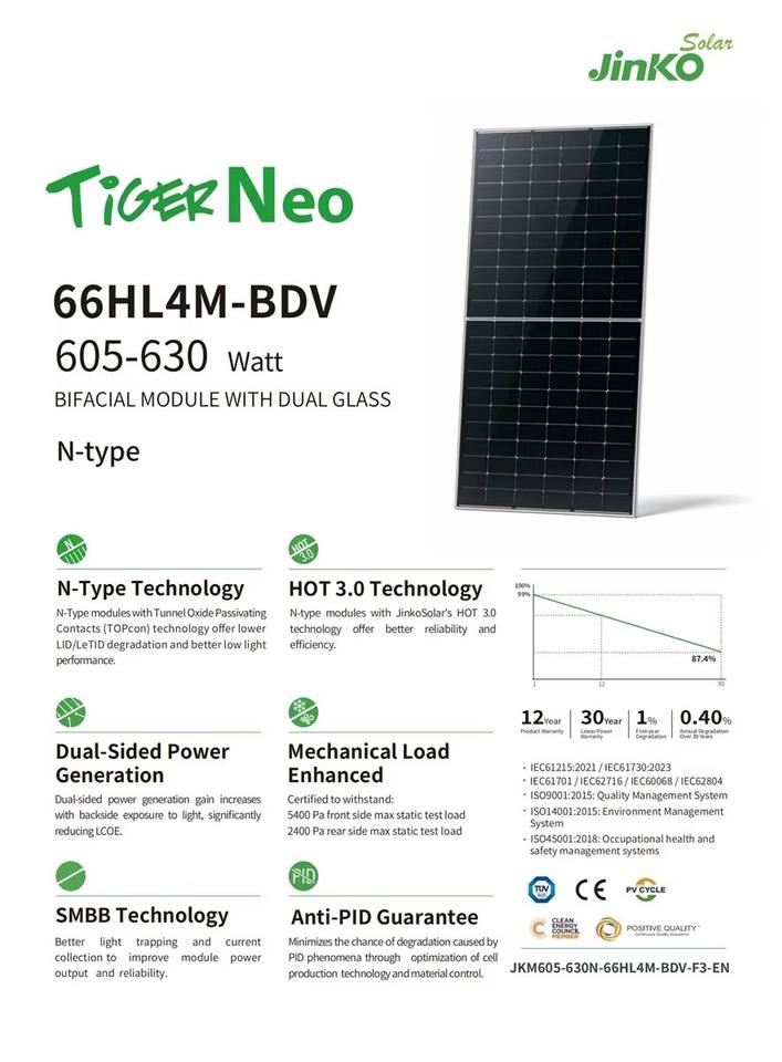 Model Number:Jinko Tiger Neo 66HL4M-BDV 605-630w