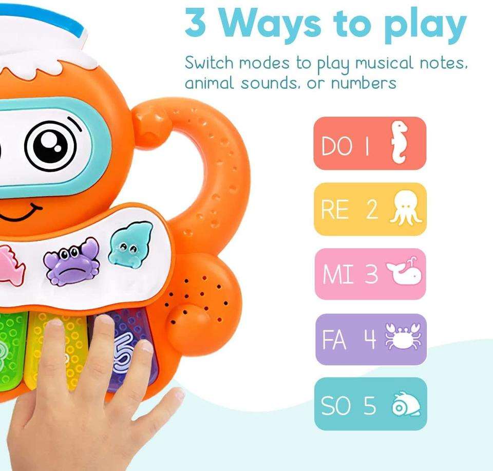 Jinming Jouet musical pour bébés Pieuvre Piano joue de la musique et des sons s'allument Clavier Jeu d'apprentissage électronique