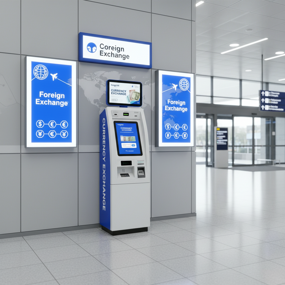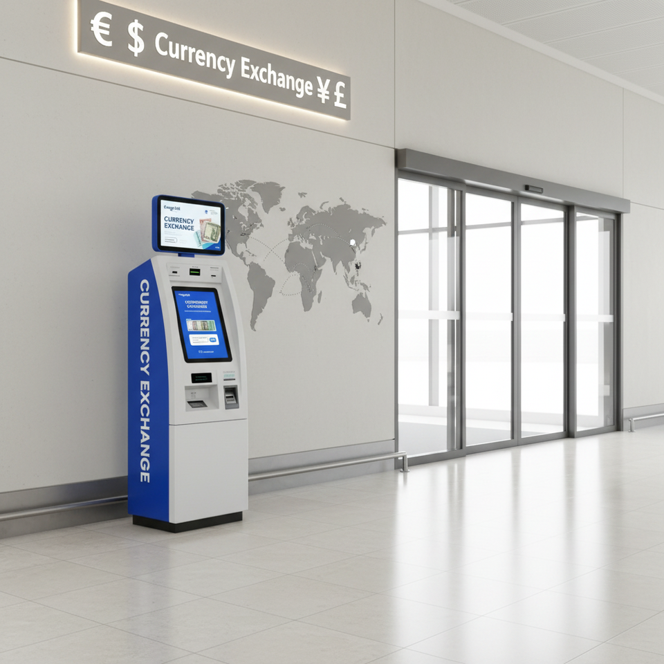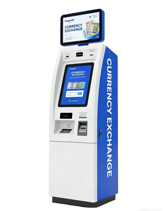 Machine de change de devises Jinrui FCM-501S grande capacité avec écran tactile 19 pouces, scanner de passeport et gestion des espèces pour kiosque étranger