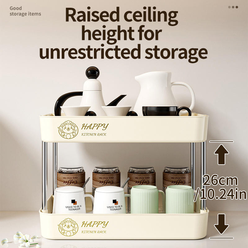 Étagère de rangement de cuisine Jinxian à 2 niveaux, porte-tasses pour tasses à thé et à café avec barres en acier inoxydable, multifonction