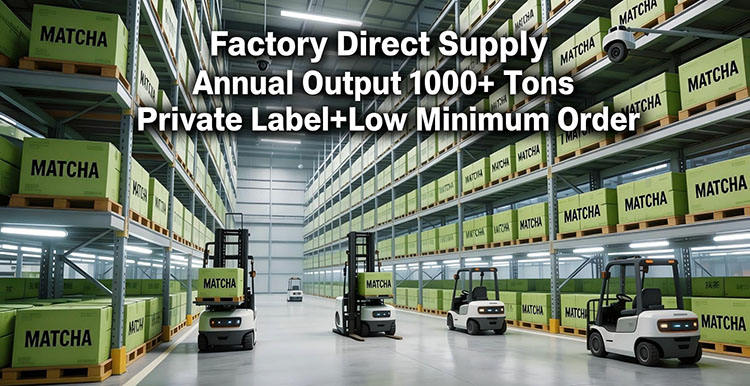 Thé vert matcha en poudre de haute qualité Jiueco, thé minceur, bienfaits pour la santé, boîte et sachet avec tasse
