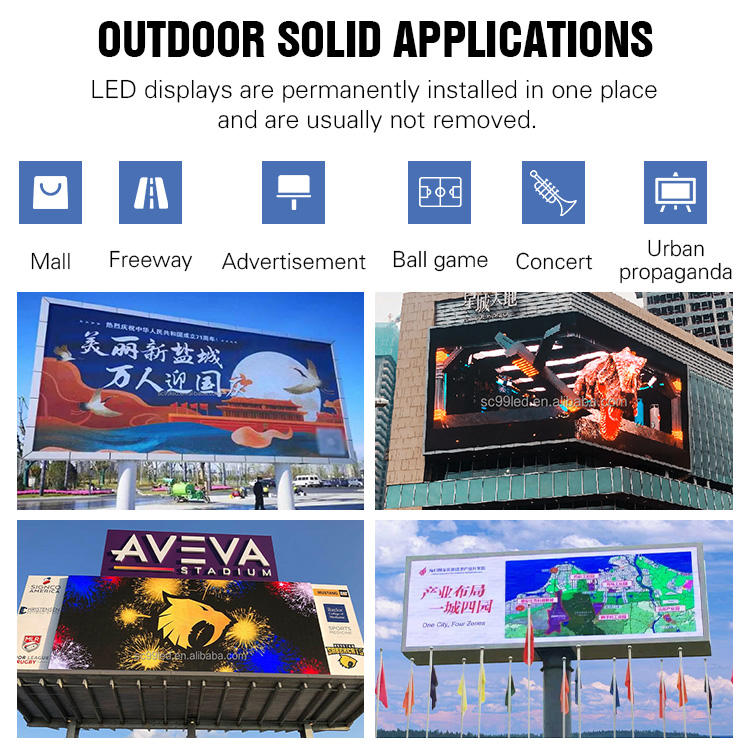 Application:Panneau d’affichage extérieur, Panneau d'affichage extérieur, Écran d'affichage à LED pour mur vidéo extérieur, Écran en aluminium à économie d’énergie à cathode commune