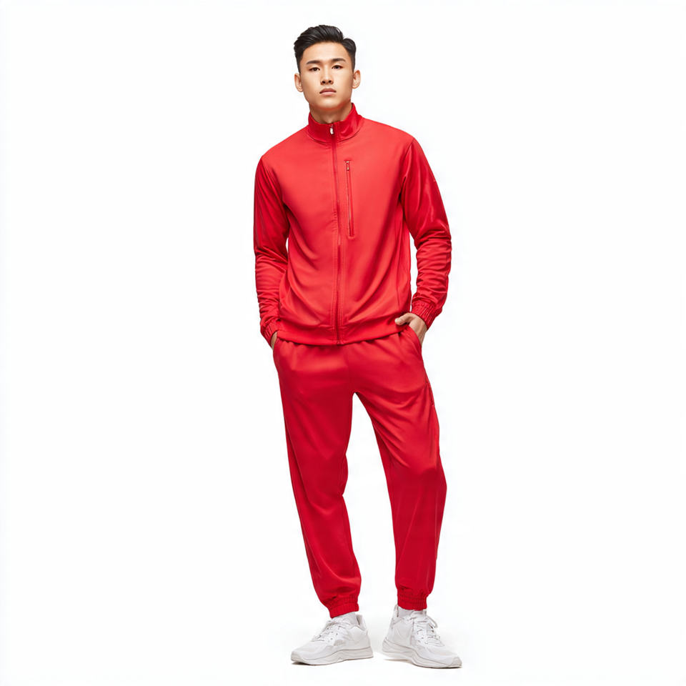 Ensemble de survêtement pour homme 100% polyester, sweat à capuche zippé et pantalon de jogging, pour l'extérieur et le streetwear