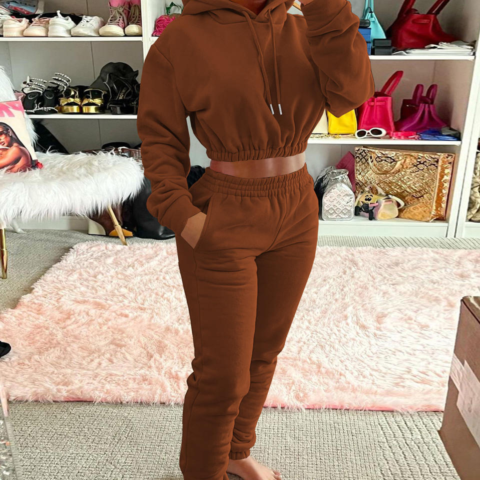 Joggers recadrée logo personnalisé haut court capuche sweats pantalons de survêtement blanc sweats à capuche lourds ensembles femmes vêtements femmes automne tenues 2022