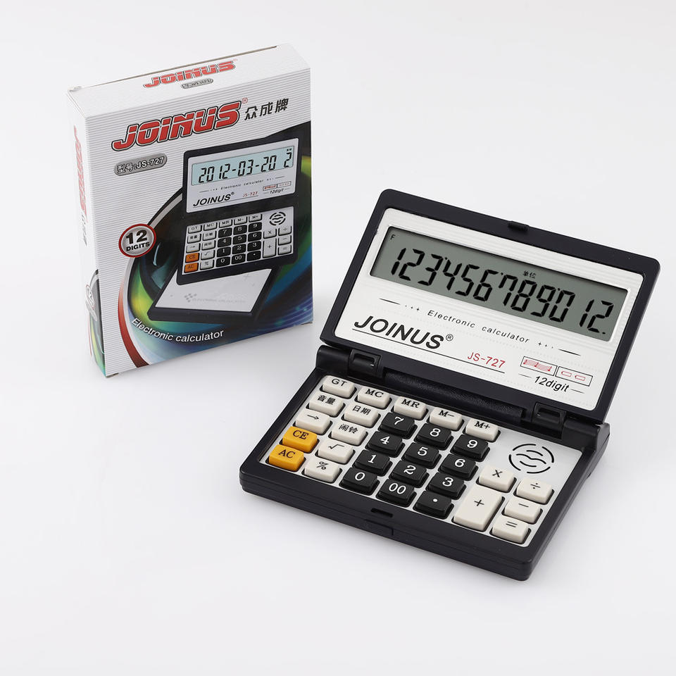 Calculatrice pliable Joinus Js-727 à 12 chiffres avec fonction vocale, portable, fonctionnant sur piles, en ABS noir
