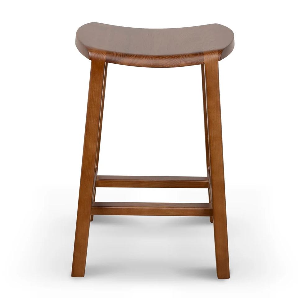 Tabouret de bar moderne réglable Jordi en teck massif avec finition noyer foncé pour une utilisation en intérieur/extérieur