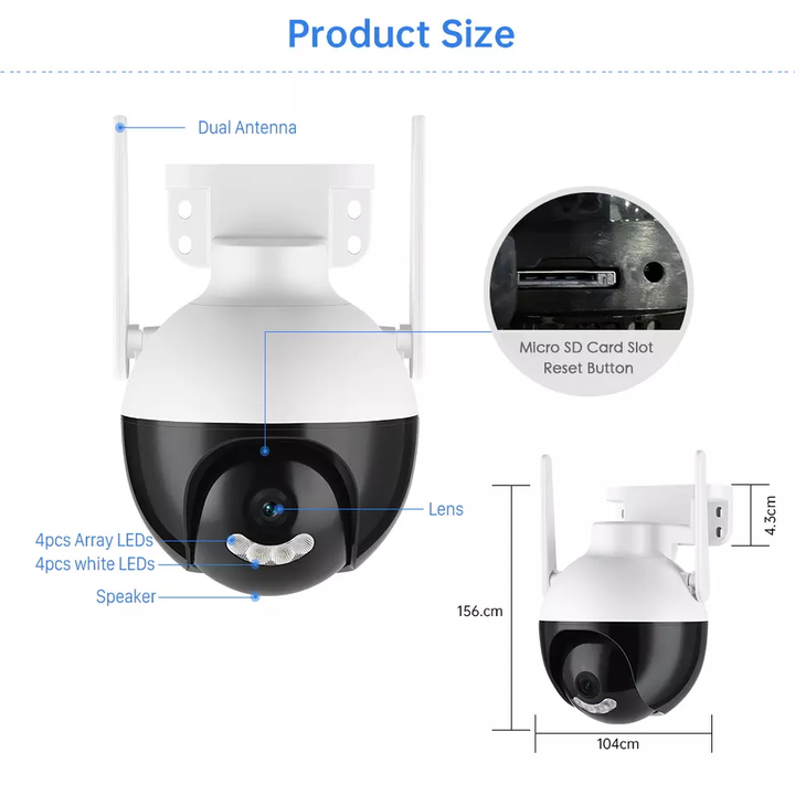 Audio bidirectionnel, PAN-TILT, RESET, Vision nocturne, Imperméabilisez/protégez contre les intempéries, Grand Angle
