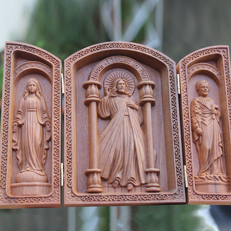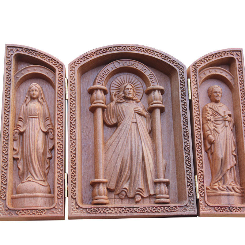 La Sainte Famille de Joseph à trois en bois pur Gravure écologique Artisanat Panneaux muraux Dimanche Liturgique Gravure écologique