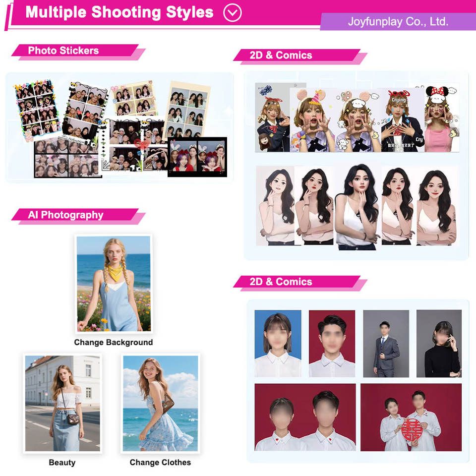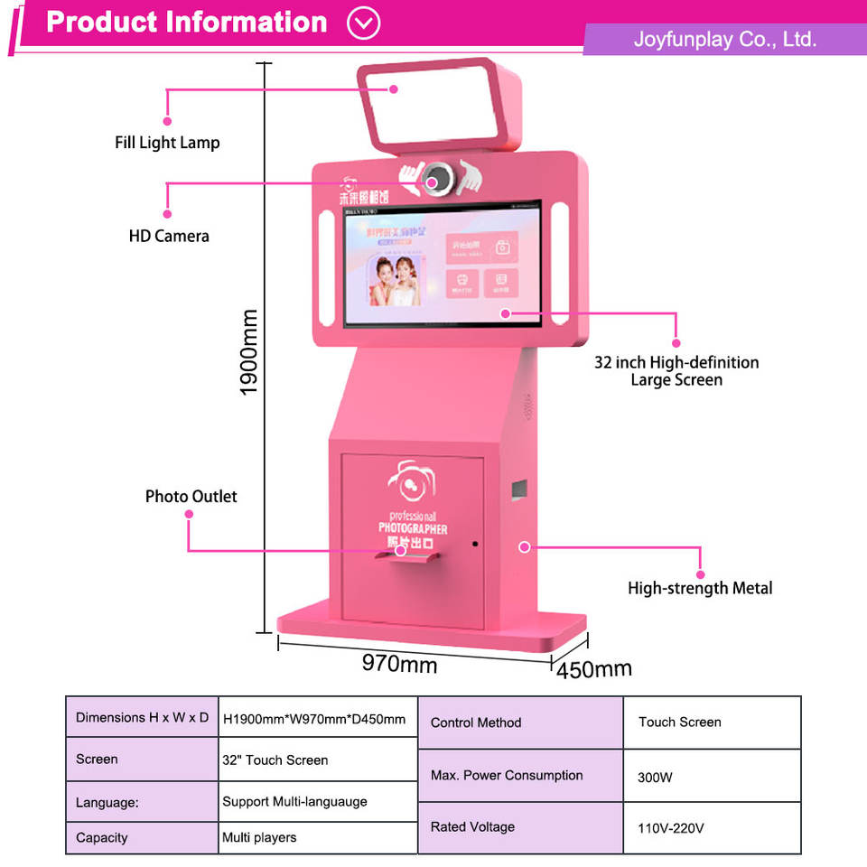 Photomaton automatique JoyFunplay Factory avec imprimante, appareil photo reflex numérique, écran tactile, contrôle tactile, photomaton en métal, distributeur automatique