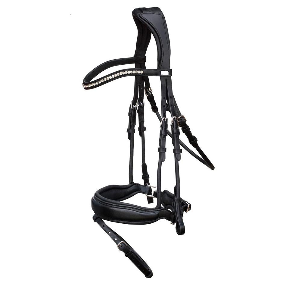 Snaffle bridle black with white crystal brow bandProduct name