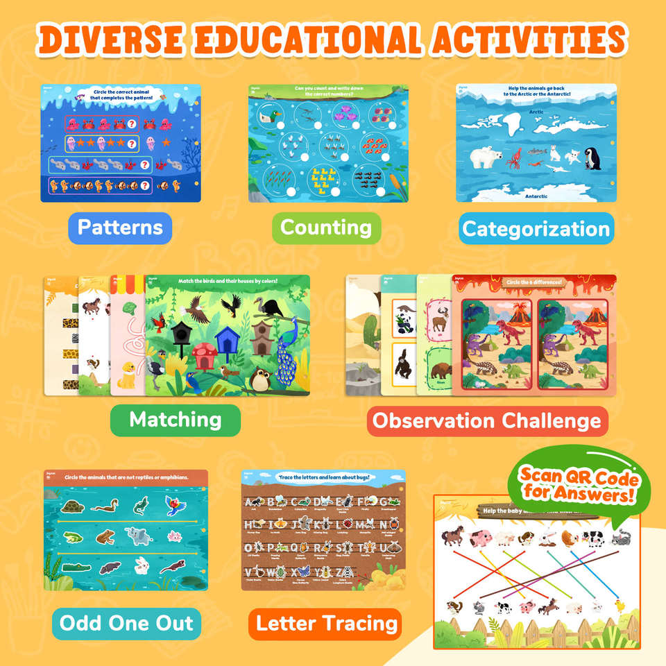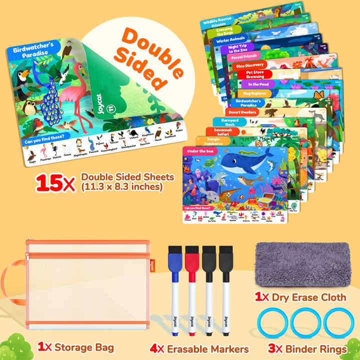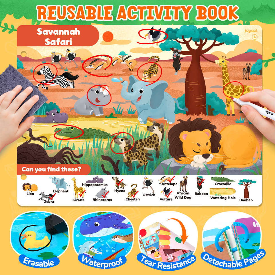 Joycat Livre d'activités réutilisable Jeux éducatifs pour enfants de 2 ans et plus Matériel pédagogique préscolaire pour la recherche et l'apprentissage