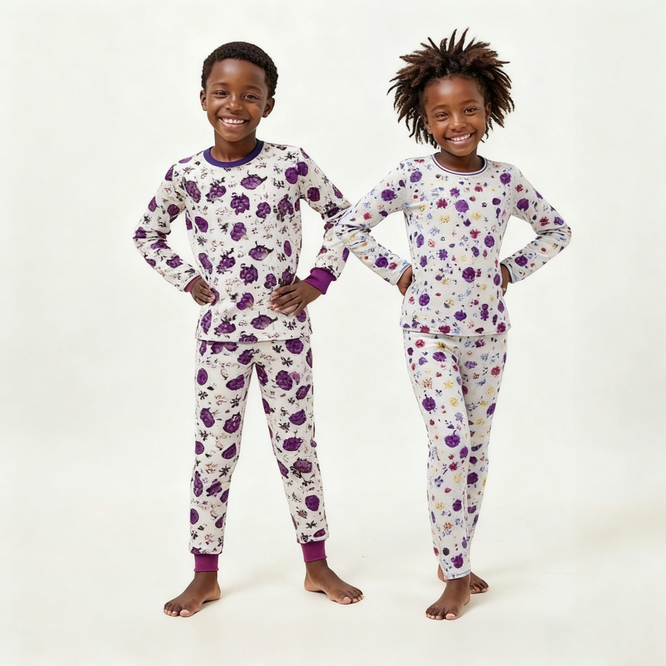 Ensemble de pyjama pour enfants en coton et fibre de bambou respirant et thermique personnalisé Joymay pour garçons et filles, manches longues, vêtements de nuit