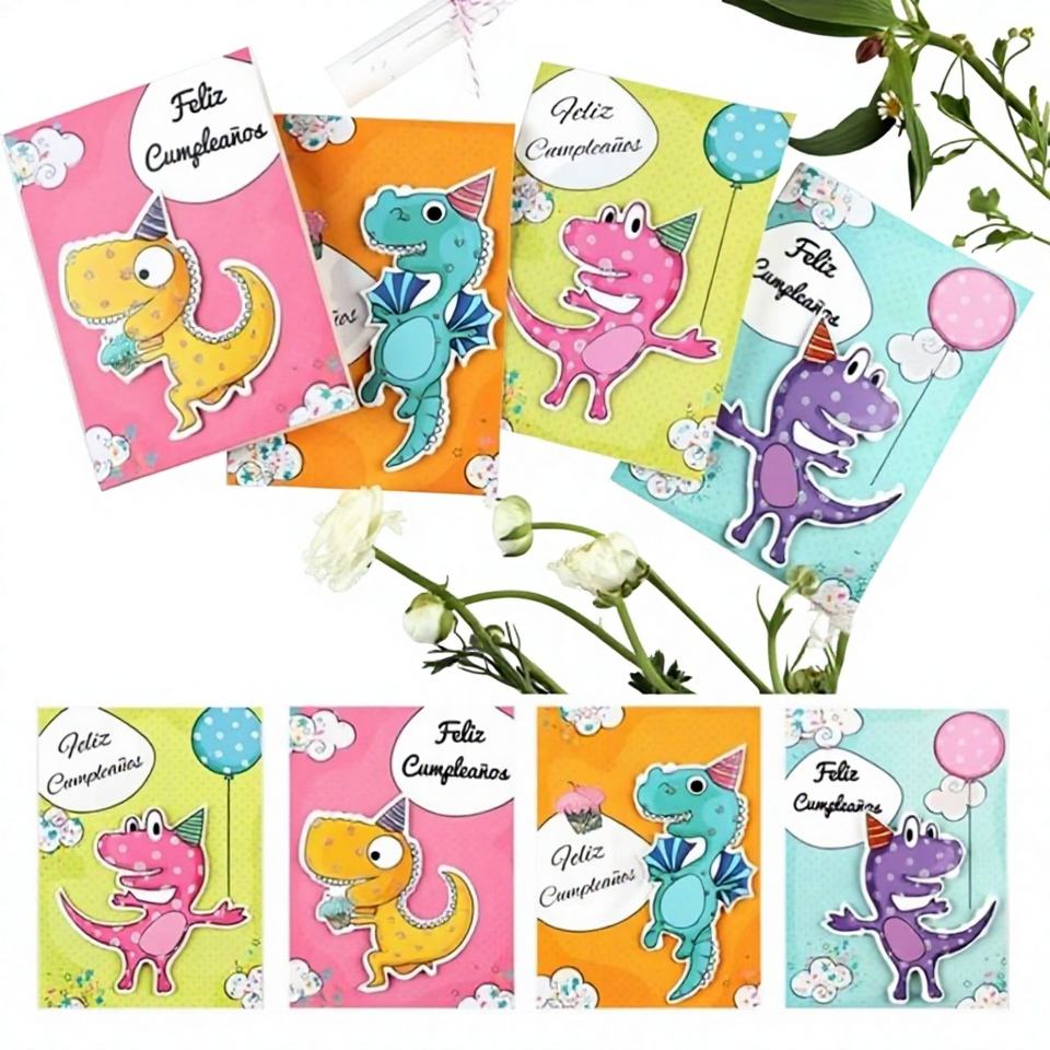 Carte de vœux 3D recyclable enveloppée de Jude Lyjenny avec un design de dinosaure, impression offset, vernis mat pour la rentrée scolaire