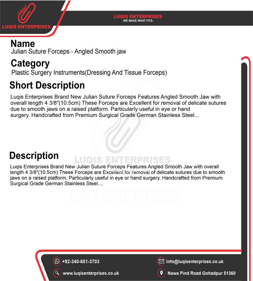 Pinces à suture Julian à mâchoires lisses et coudées, instrument chirurgical en acier inoxydable, pinces médicales de précision