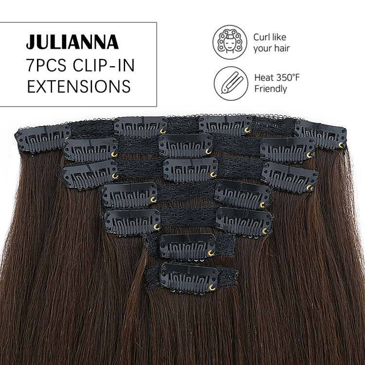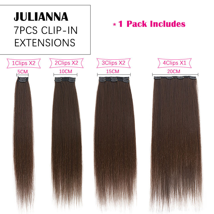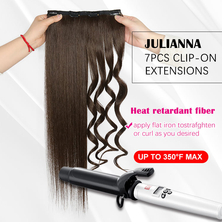 Extensions de cheveux synthétiques à clipser Julianna Wholesale, 24 pouces, 7 pièces, 16 clips