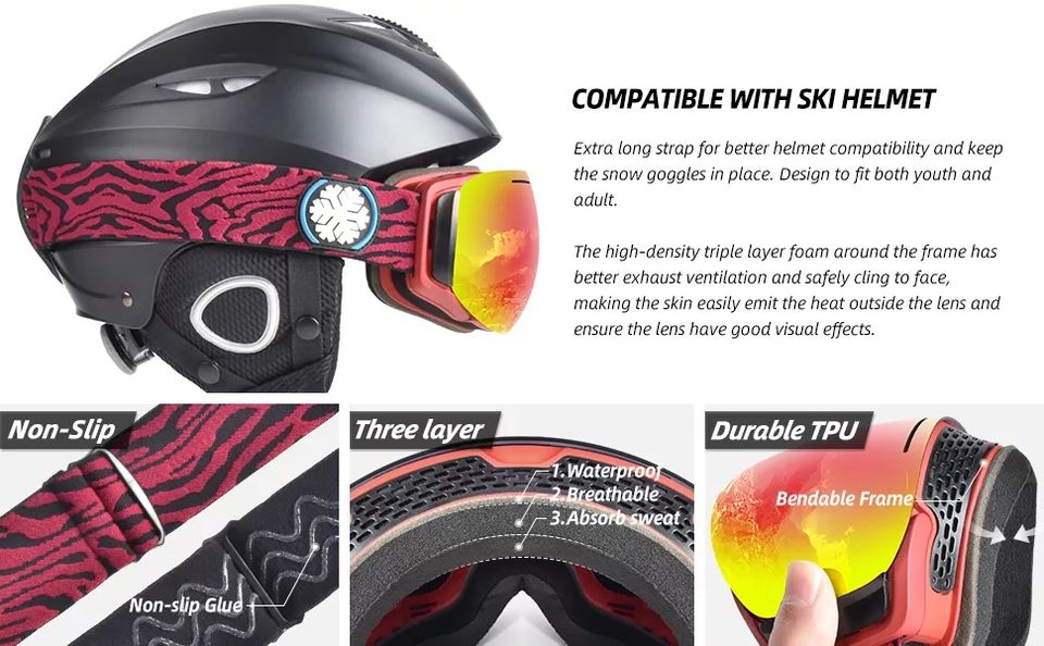 Lunettes de ski Julong bon marché d'usine Lunettes de neige à double lentille Lunettes de snowboard avec logo personnalisé