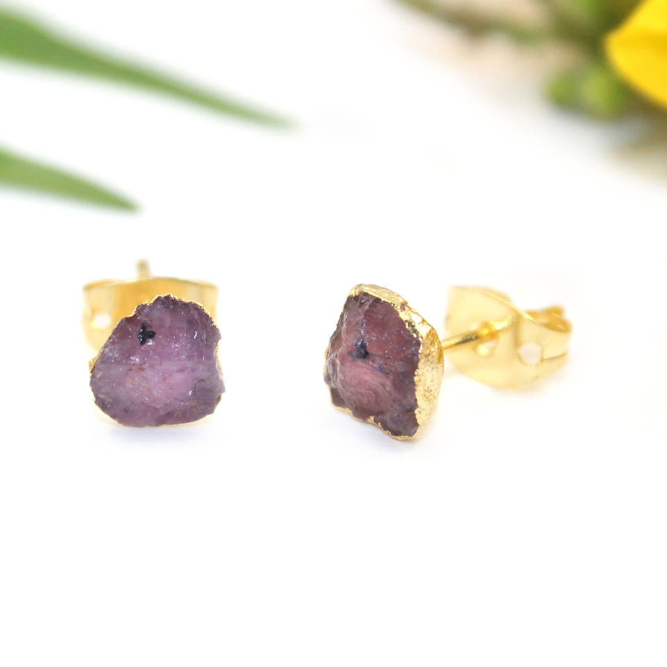 Boucles d'oreilles à tige rubis brut pierre de naissance juillet bijoux galvanisés en or pour femmes