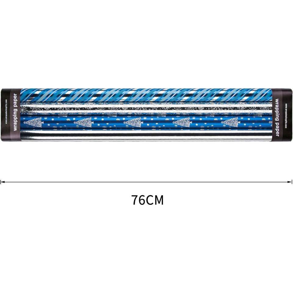 Lot de 4 rouleaux de papier cadeau de Noël Jumbo 30 pouces à rayures flocon de neige bleu et argenté avec effet métallisé brillant