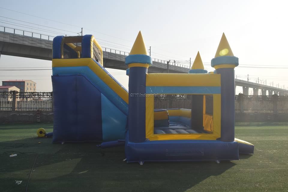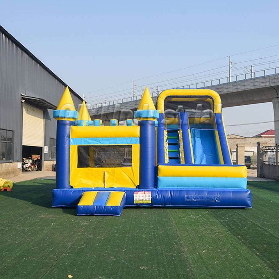 Château sautant avec toboggan Château gonflable jaune bleu de qualité supérieure avec toboggan en PVC durable pour les terrains de jeux de fête en plein air pour enfants