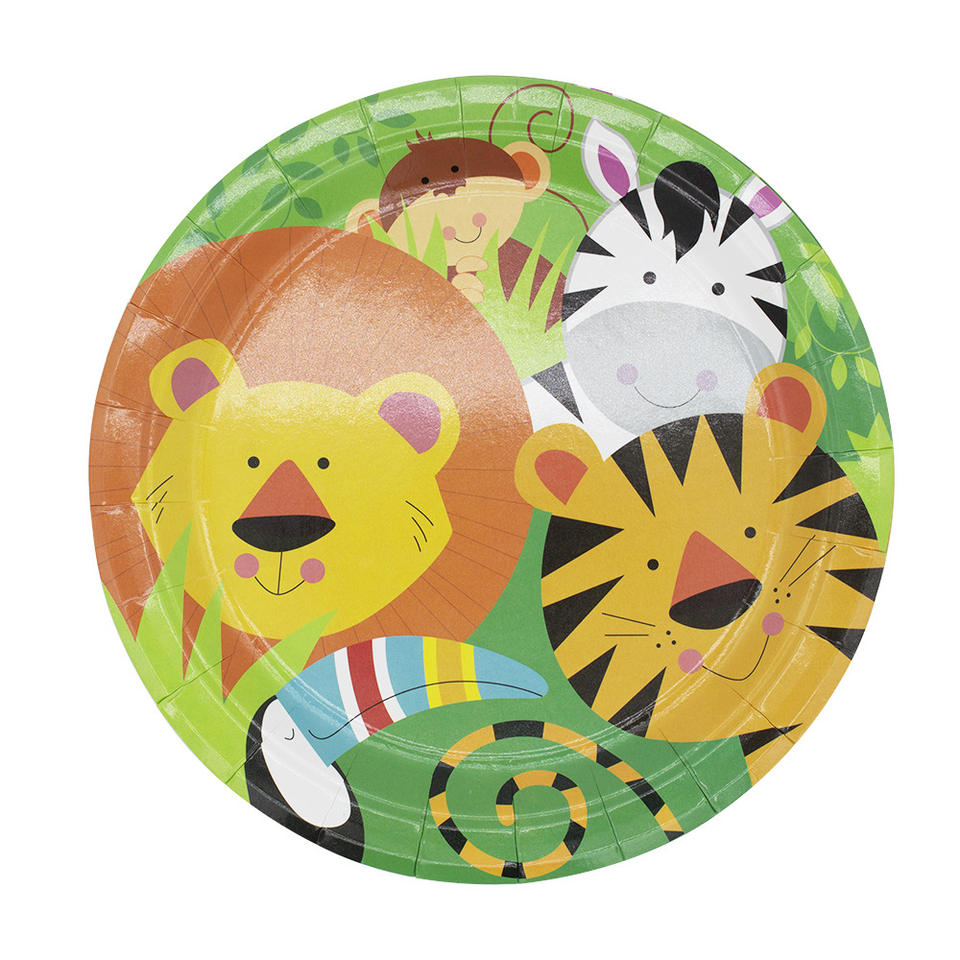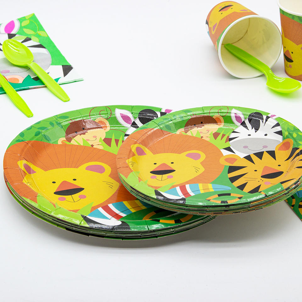Vaisselle jetable Animal de la jungle pour les fêtes d'anniversaire des enfants comprend des assiettes serviettes en tissu Graduation Noël Pâques
