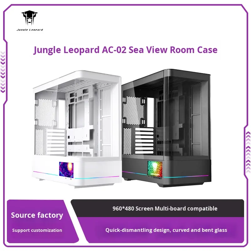 Écran AC-02 Jungle Leopard 5.5 pouces HD verre incurvé Gaming Sea View Room Fish Tank Case Fan Metal Side Transparent Stock