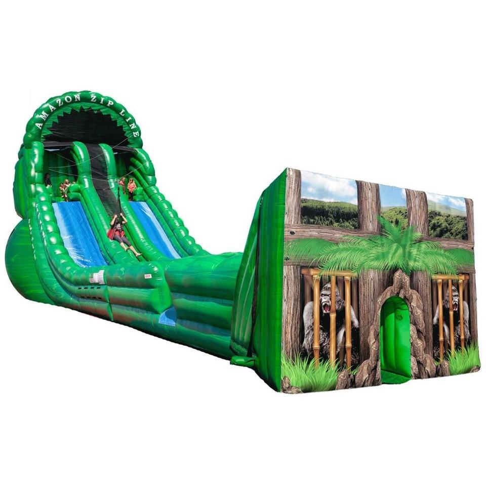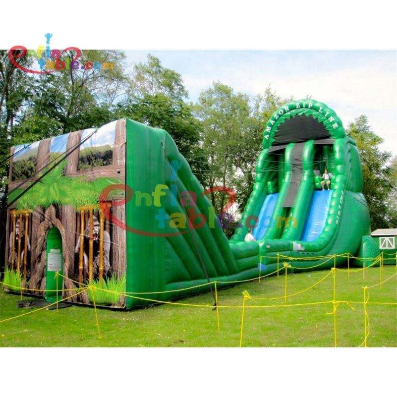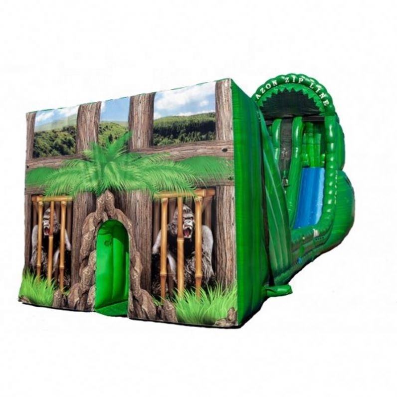 Toboggan gonflable Jungle Safari avec tyrolienne pour enfants - Aire de jeux commerciale sur le thème des singes avec souffleur