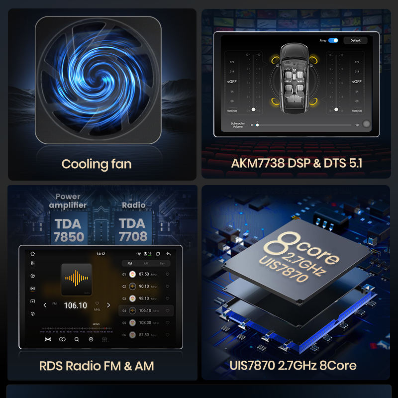 CarPlay, Mirror Link, android auto, Bluetooth-enabled, Build-in DSP, MP3/MP4, Touchscreen, Radio Tuner, Remote Control, Amplifier, Backup camera, Voice Guidance, Steering Wheel Control, Split Screen, Distance Warning, Reversing Aid, Live Parking, MultiMedia Supported, Speed Warning, Build-in Microphone, ADAS, Voice Interaction