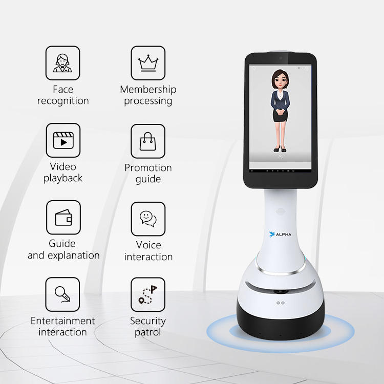 Robot de service de réception Jupiter AI pour la banque | Guide intelligent et robot d'assistance à la clientèle avec écran tactile