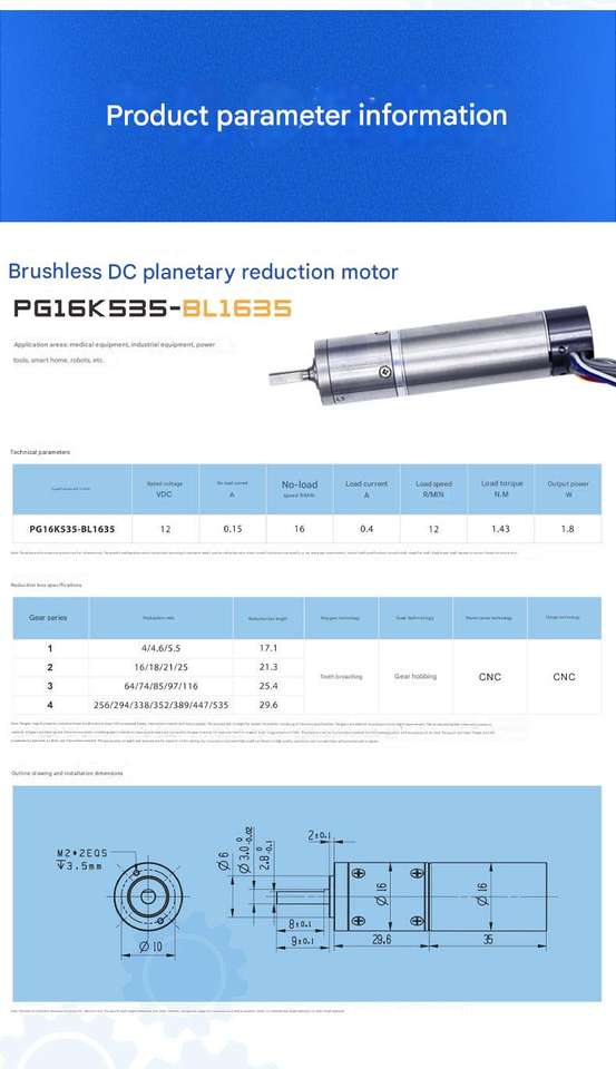 Nom du produit:Moteur sans brosse planétaire de 12mm