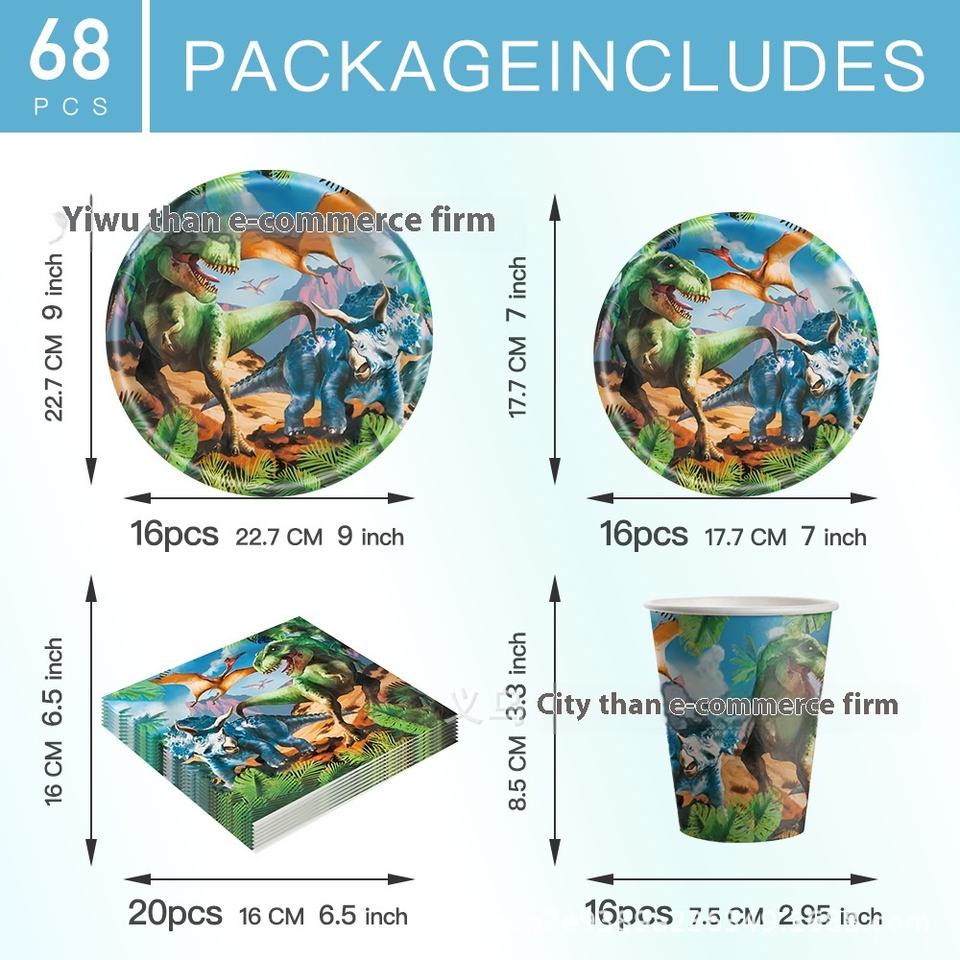 Vaisselle jetable sur le thème de la forêt de dinosaures jurassiques Fête d'anniversaire pour enfants pour Amazon Ramadan Décoration de fête de dessin animé