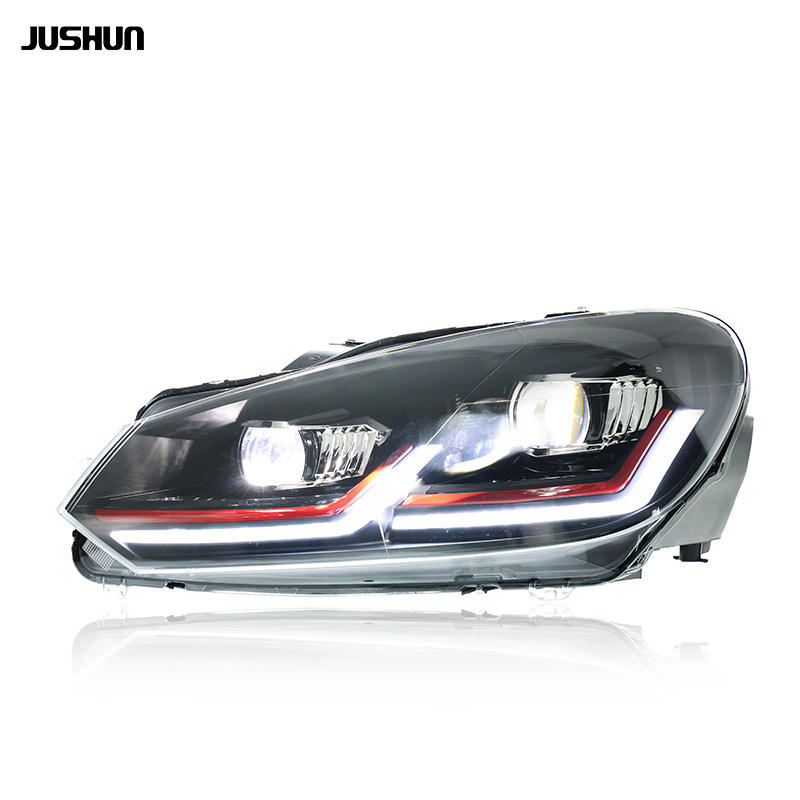 Jushun Volkswagen Golf 6 09-13, modification de l'ensemble des phares, nouveau phare à LED, feux de jour en rouge, ligne argentée, matériau PC