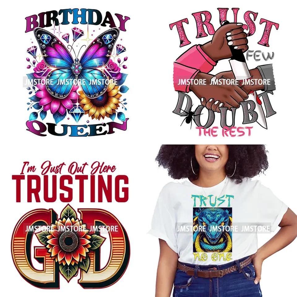 Juste ici faire confiance à Dieu béni décalcomanies confiance peu de doutes le reste DTF fer sur transfert autocollants prêt à presser pour les sacs de T-shirt