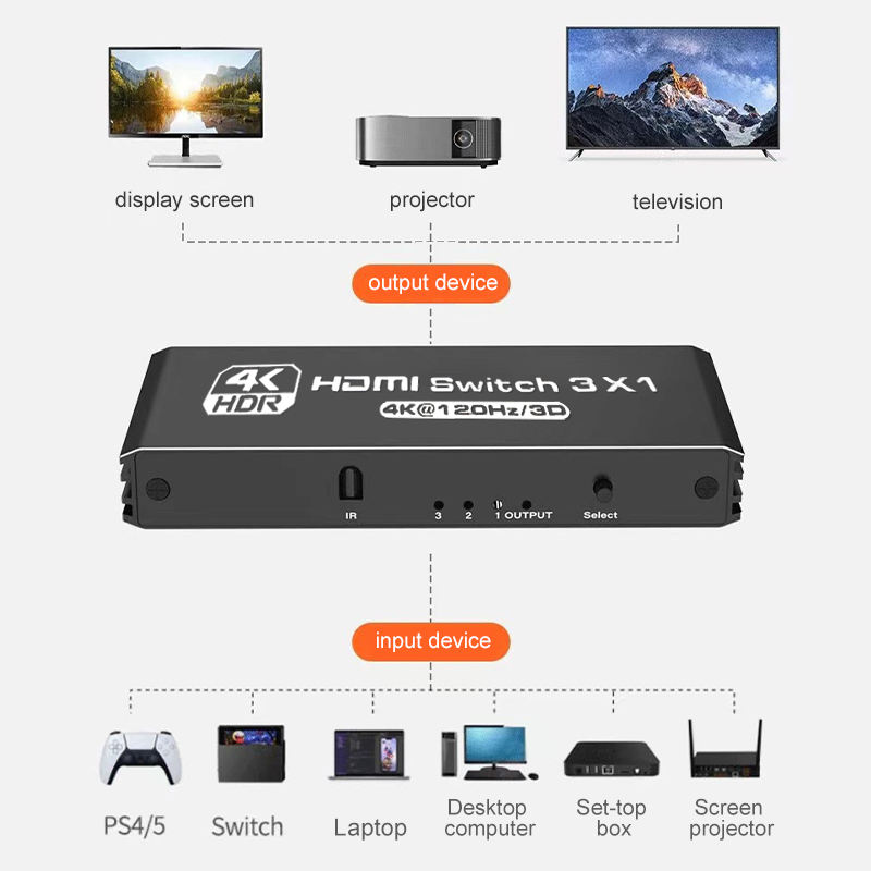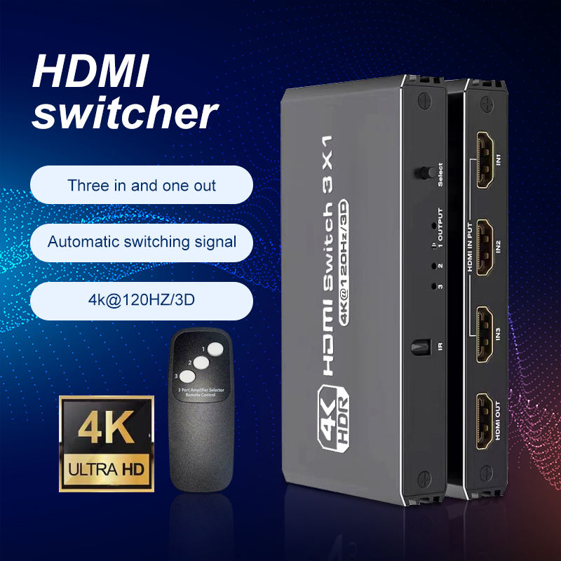 Commutateur Justlink 3 ports HDMI2.0 3X1 4K 120Hz 3D hdmi HDR convertisseur de commutateur vidéo HD 3 en 1 avec télécommande pour projecteur