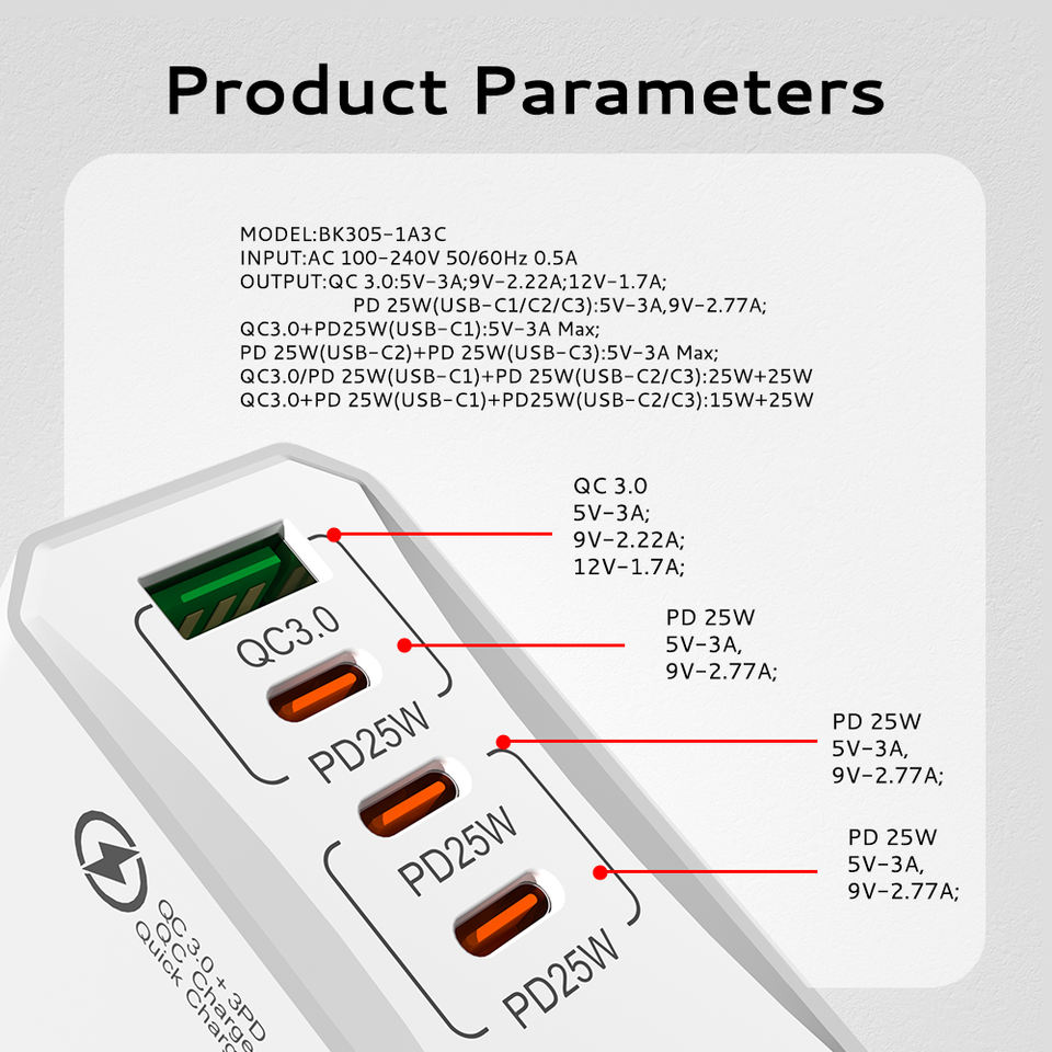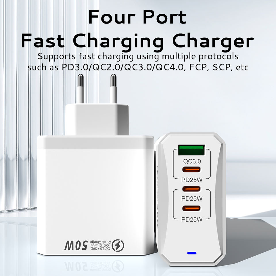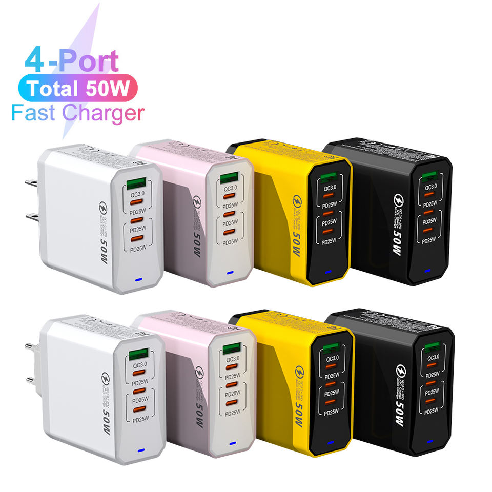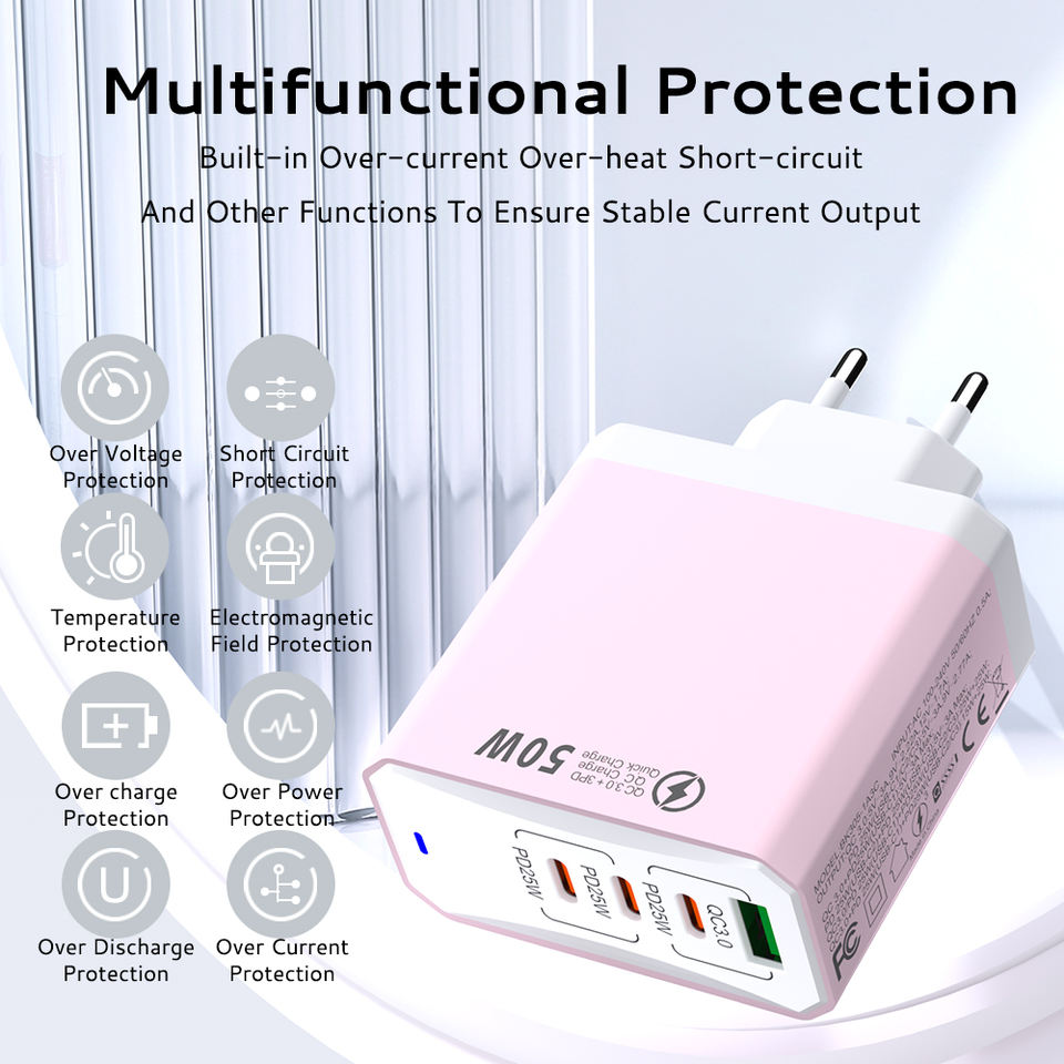 Justlink 50W 4 Ports USB Chargeur PD25W Charge rapide QC3.0 Type C Adaptateur avec 5A ABS pour station d'alimentation de téléphone portable