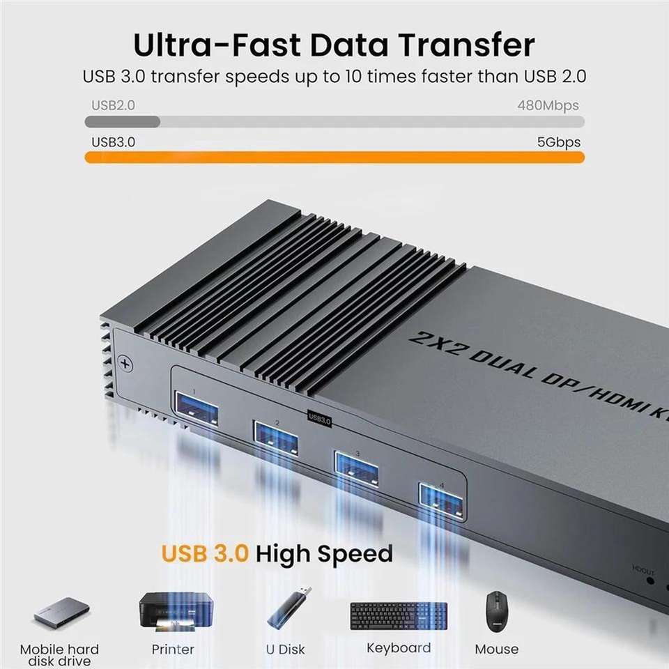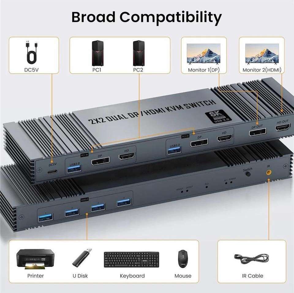 Justlink HDMI2.1 2x2 double DP HDMI KVM commutateur 8K 60Hz double moniteur USB3.0 commutateur pour 2 ordinateurs Audio vidéo accessoires