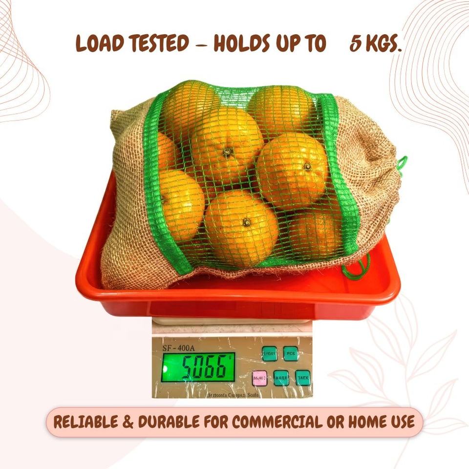 Sac en filet biodégradable en jute avec cordon de serrage 38*28cm, réutilisable, respirant, pour courses et rangement, capacité jusqu'à 5 KG pour fruits et légumes
