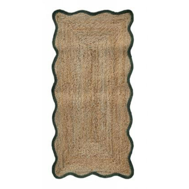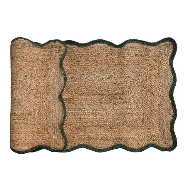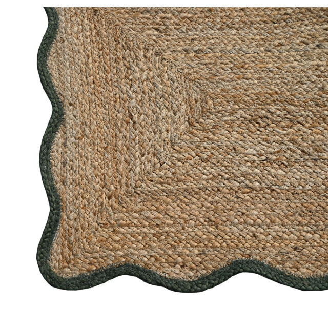 Tapis tressé en jute écologique antidérapant à poils plats rectangulaire pour intérieur, design géométrique vert naturel