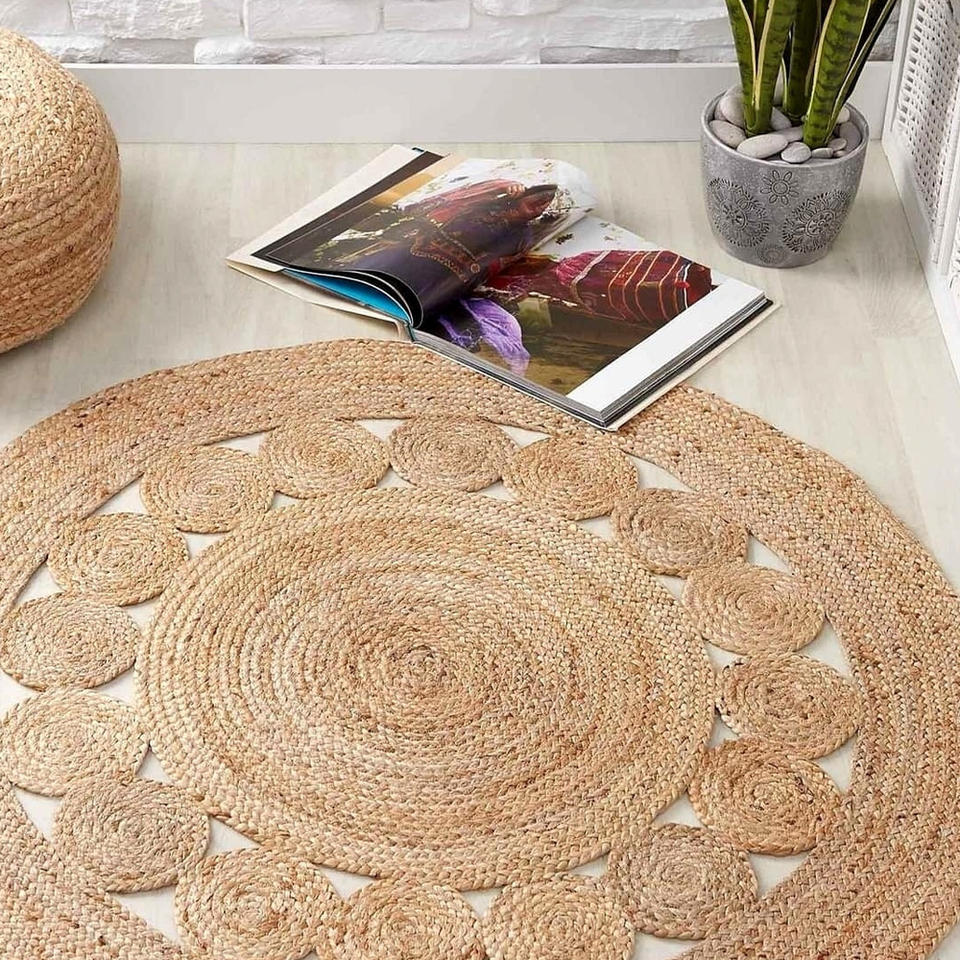Tapis Dhurrie en jute, tissage plat traditionnel, léger et réversible, pour une décoration intérieure polyvalente et portable.