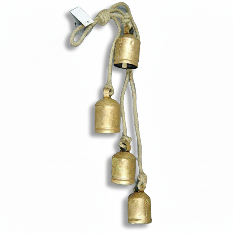 Corde de jute cloches suspendues cloches en fer finition dorée décoration de maison et de jardin ornements bon marché cloches de Noël pour les vacances