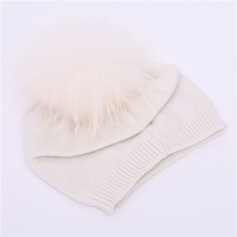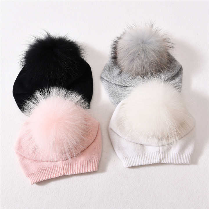 Nom du produit:Bonnet pour bébé en laine tricotée avec véritable fourrure