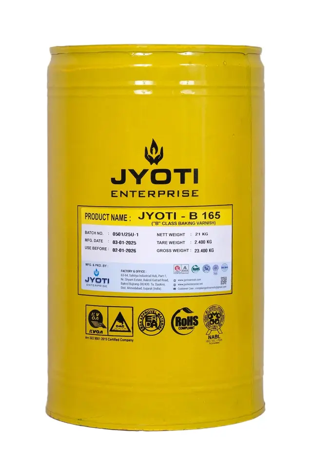 Vernis de cuisson Jyoti B 165 à appliquer au pinceau, poids net 21 kg, isolation électrique industrielle pour bobinages de moteurs et de transformateurs